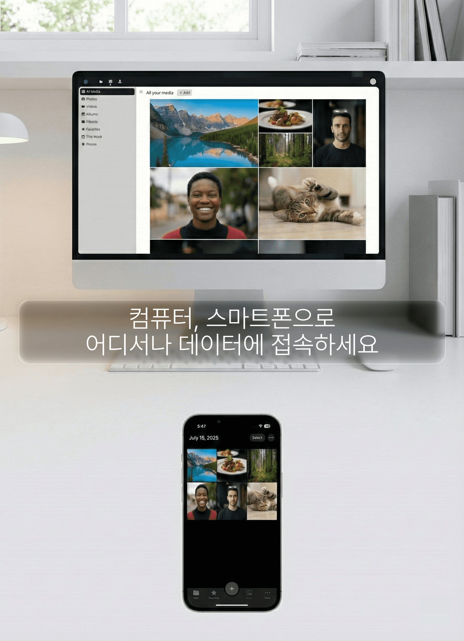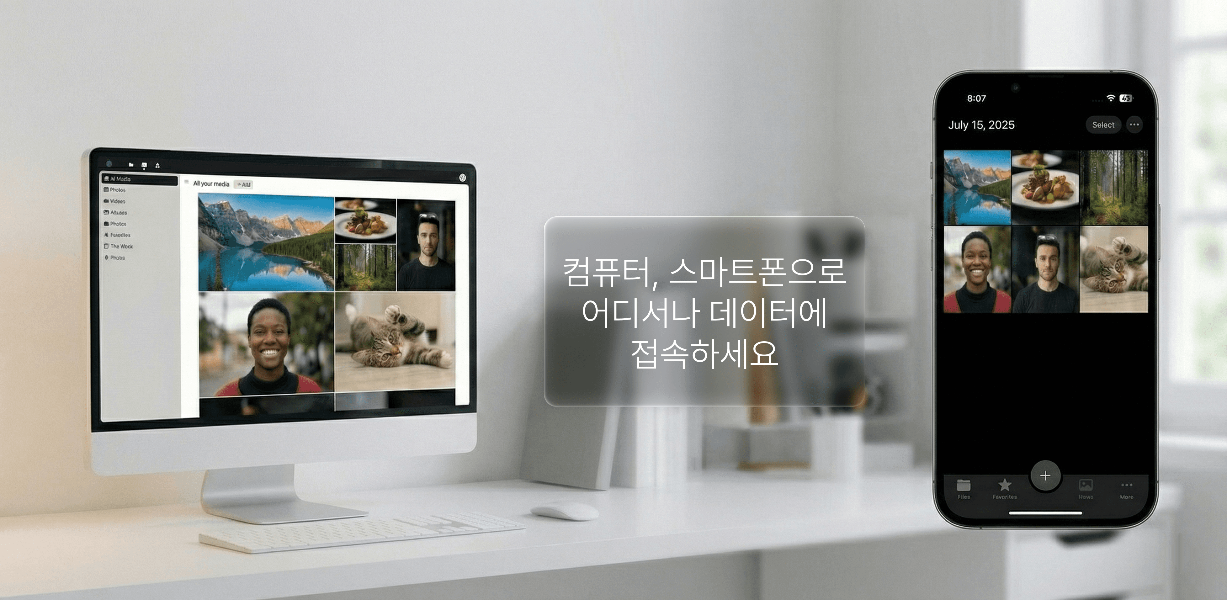 iOS와 Android 전용 모바일 앱을 통해 파일에 즉시 안전하게 접근할 수 있습니다. PC나 Mac에서는 별도의 소프트웨어 설치 없이 웹 브라우저만으로 모든 파일을 관리할 수 있습니다. 집에서든 사무실에서든 큰 화면으로 편리하게 파일을 정리하고 검색할 수 있어 업무 효율성이 크게 향상됩니다.
